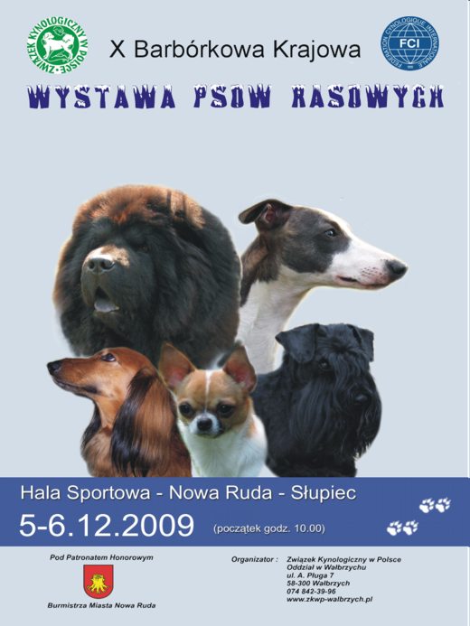KulturaJuż w najbliższy weekend (5-6 grudnia) w hali Centrum Turystyczno - Sportowego w Nowej Rudzie - Słupcu, po raz dziesiąty odbędzie się Barbórkowa Krajowa Wystawa Psów Rasowych. Czworonogi z kraju i zagranicy będzie można oglądać od godziny 10.00.