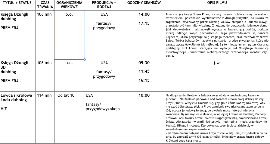Cinema 3D -Repertuar prasowy