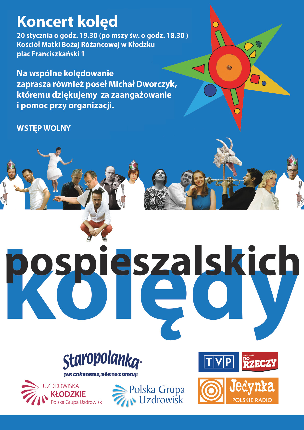 Zapraszamy na koncert: KOLĘDY POSPIESZALSKICH. Kłodzko - Kościół Matki Bożej Różańcowej przy Placu Franciszkańskim 1. Piątek, 20 stycznia 2017 r., godz. 19:30 (po mszy świętej, wieczornej). Wstęp wolny.