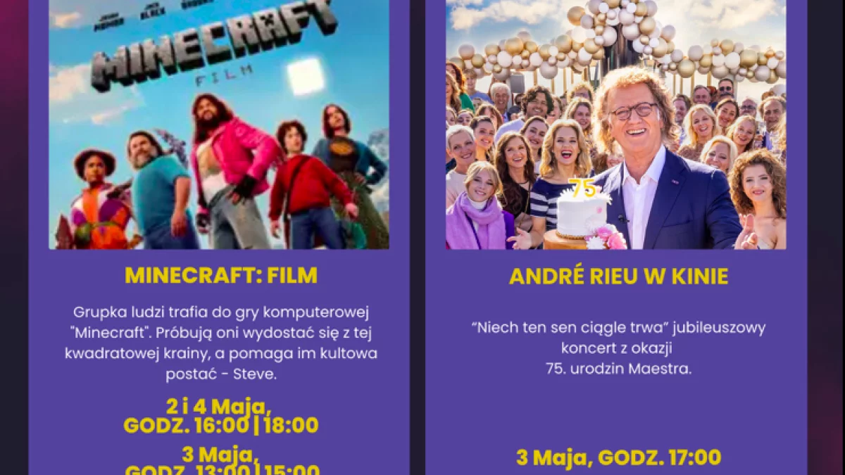 Tegoroczna majówka w Nowej Rudzie zapowiada się nie tylko słonecznie, ale też... filmowo! Miejski Ośrodek Kultury przygotował dla mieszkańców i turystów wyjątkowy repertuar, który przypadnie do gustu zarówno najmłodszym widzom, jak i miłośnikom muzyki klasycznej.