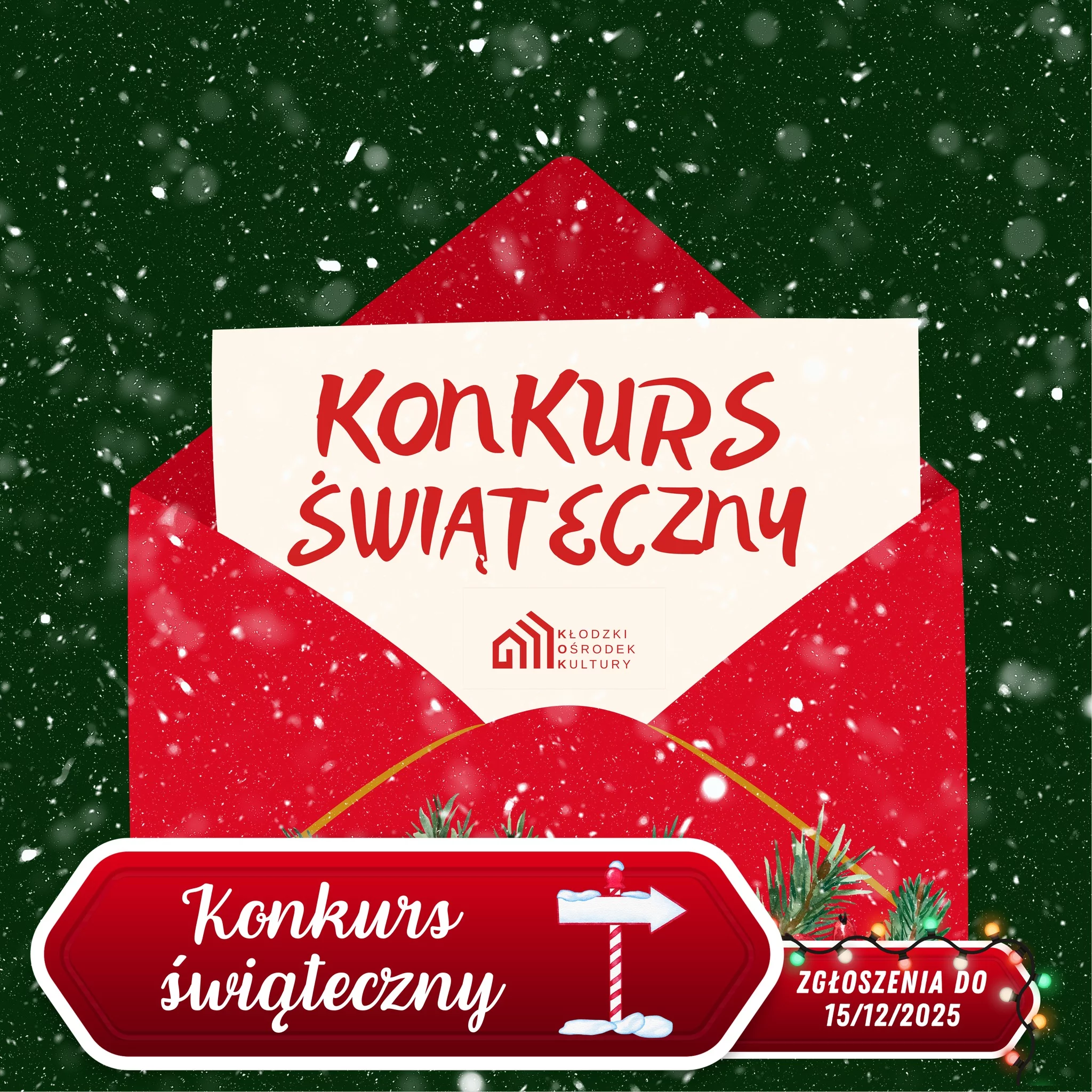 Wykonaj własnoręcznie kartkę świąteczną w dowolnej technice plastycznej. Na pracy lub obok niej umieść napis „Boże Narodzenie 2025”, który powinien być widoczny na podesłanym zdjęciu konkursowym.
