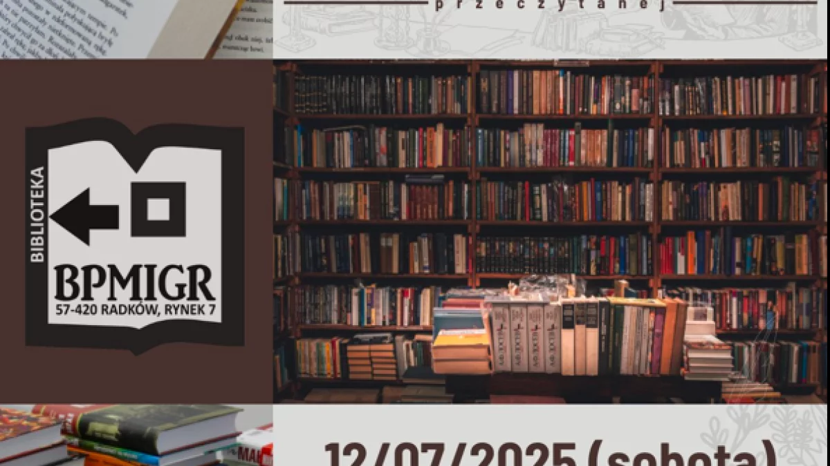 Już w sobotę, 12 lipca przed Biblioteką Główną w Radkowie odbędzie się wyjątkowe wydarzenie dla wszystkich miłośników książek – Kiermasz Książki Przeczytanej. W godzinach od 11:00 do 15:00 każdy będzie miał okazję zanurzyć się w świecie literatury i znaleźć dla siebie prawdziwe perełki.