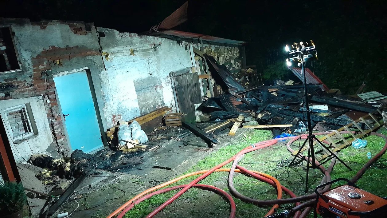 Działania strażaków polegały na podaniu prądów wody w natarciu oraz częściowej rozbiórce elementów budynku celem dotarcia do źródeł ognia