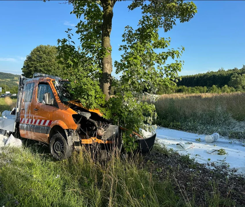 Nowa Ruda. We wtorek, 16 lipca, około godz. 18:10 na ul. Słupieckiej w Nowej Rudzie 51-letni mężczyzna kierujący samochodem ciężarowym marki Mercedes, na chwilę obecną z nieustalonej przyczyny, stracił panowanie nad pojazdem, zjechał na przeciwległy pas ruchu, a następnie uderzył w przydrożne drzewo.