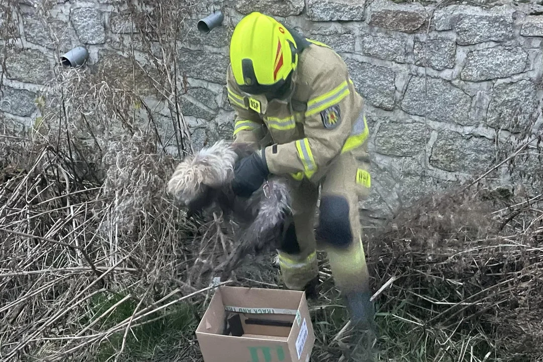 Wczoraj strażacy z OSP Nowa Ruda – Słupiec wyciągnęli z koryta potoku Dzik uwięzionego, chorego psa. Czworonóg trafił pod opiekę weterynarza.