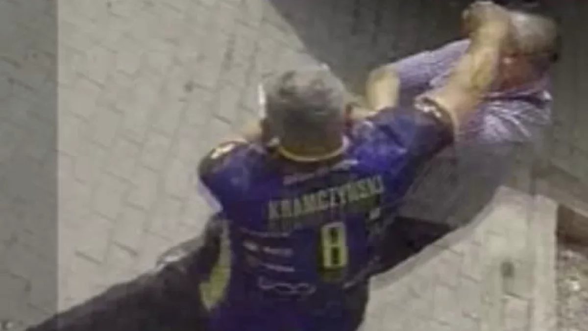 Moja, a o co chodzi? – odpowiedział właściciel pojazdu i, dostrzegając zacietrzewienie agresora, ruszył w kierunku wyjścia. Oskar B. podążył za nim. Co było dalej, widać na nagraniu z kamery monitoringu zamontowanej nad wejściem do lokalu.