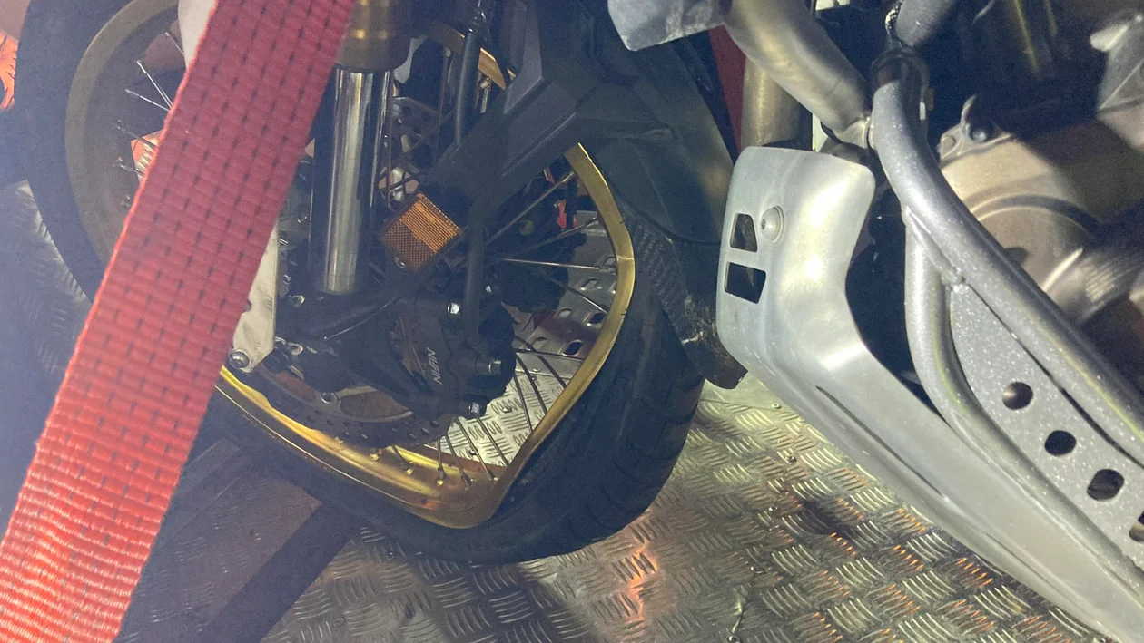Motocyklista nie miał już możliwości ucieczki, doszło do zderzenia. Na szczęście, dzięki odpowiedniej prędkości i profesjonalnej kurtce motocyklowej, kierowca jednośladu nie odniósł obrażeń.