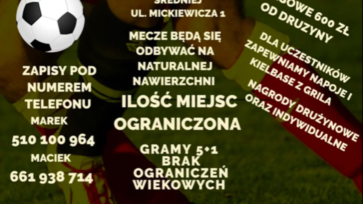 Zgłoszenia drużyn przyjmują organizatorzy: Marek – tel. 510 100 964, Maciek – tel. 661 938 714