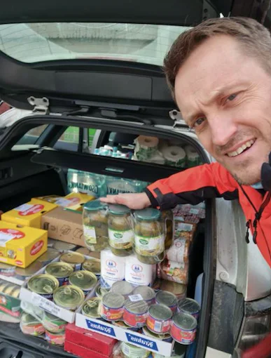 Moja firma zamówiła m.in. różnego rodzaju oświetlenia czołowe (ręczne), przypaskowe, czyli rzeczy, które przydadzą się, gdy nie ma dostępu np. do prądu. Kupiłem też odpowiednią ilość baterii. Przy okazji kupiłem też taki sprzęt, który ładuje się za pomocą energii słonecznej. Na zbiórki bardzo pozytywnie zareagowali również mieszkańcy Przygórza. Znajomy, który prowadzi firmę podarował kilka kompletów pościeli, o które prosiłem, ludzie podarowali ubrania, medykamenty. Moja żona zabrała dziewczyny, które zamieszkały u nas na zakupy, choć one tak nie do końca chciały, bo były speszone i trochę się wstydziły. Ale żona powiedziała, że mają się niczym nie przejmować i wybrać to, co jest im potrzebne z ubrań i kosmetyków. Nawet nowy mieszkaniec Przygórza, który niedawno się do nas przeprowadził z Bydgoszczy dotarł do mnie i też powiedział, że jak dziewczyny będą czegoś potrzebować, to on pomoże i kupi. Zaproponowałem zatem, żeby kupił np. voucher, żeby na zakupy pojechała z nimi osoba, której dziewczyny już "ufają". Powiedział, że nie ma problemu. Przygotował dla nich też duże paczki m.in. z kosmetykami i dodatkowo przygotował dwie duże paczki z darami, które pojadą na Ukrainę. Dziś dary w postaci jedzenia, które jadą na Ukrainę, powinny być żywnością turystyczną z długim terminem ważności, jak np. zapakowane hermetycznie wędliny, czy konserwy, ze względu na to, że mają tam ograniczony dostęp m.in. do prądu czy gazu. Zachęcam też innych, żeby spróbowali i pomogli. Ukraina jest krajem zniszczonym i ta pomoc nie może być jednorazowa. Ona musi być długofalowa. Dopóki Ukraina, jej gospodarka nie podniosą się, Ci ludzie będą potrzebowali naszej pomocy.