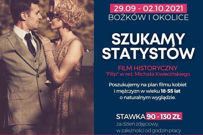 Bożków. Jutro rozpoczną się zdjęcia do filmu historycznego w reżyserii Michała Kwiecińskiego. Produkcja poszukuje statystów. Stawka za dzień zdjęciowy wynosi 90 lub 130 zł netto, w zależności od czasu spędzonego na planie.