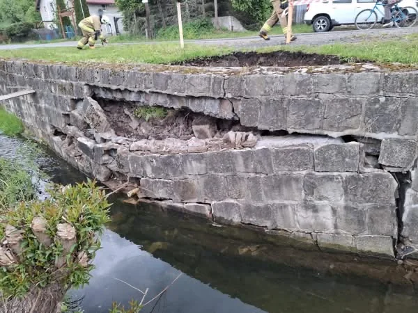 Ważny komunikat dla mieszkańców oraz kierowców poruszających się drogą powiatową na odcinku od remizy w stronę sklepu w Czerwieńczycach. W wyniku osunięcia się muru oporowego przy rzece powstała niebezpieczna wyrwa przy skraju jezdni, szczególnie niebezpieczna w rejonie zakrętu.