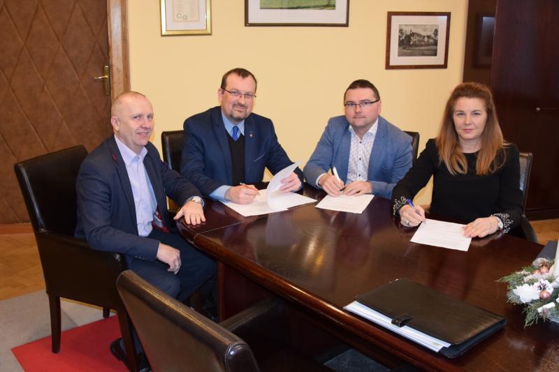 Na zdjęciu od lewej : Krzysztof Bolisęga - dyrektor PUP Kłodzko, Maciej Awiżeń - Starosta Powiatu Kłodzkiego, Piotr Marchewka - Członek Zarządu Powiatu Kłodzkiego, Elżbieta Żytyńska - Prezes Zarządu PKS w Kłodzku S.A.