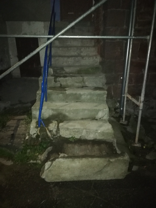 WiadomościMieszkańcy Drogosławia pokazują, po jakich schodach muszą wchodzić do domu. Oni i ich dwuletnie dziecko.