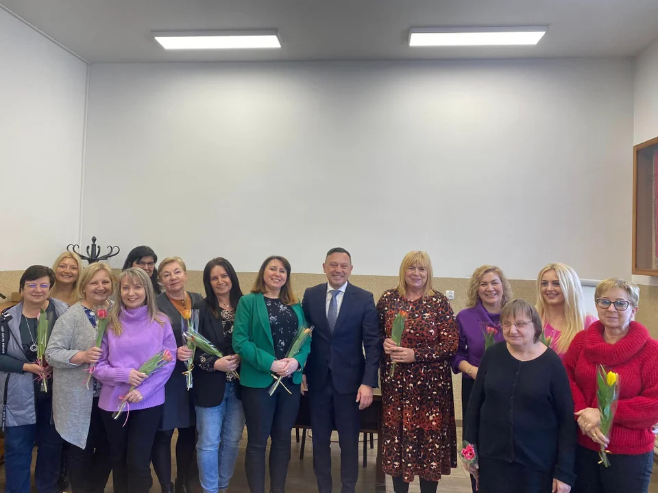 Dzień Kobiet 2024. W piątek, 8 marca Noworudzką Szkołę Techniczną odwiedził jej absolwent Tomasz Kiliński – burmistrz Nowej Rudy. To była wielka niespodzianka zarówno dla żeńskiej części kadry pedagogicznej jak i dla samego włodarza miasta. .