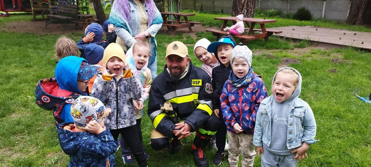 Druhowie opowiedzieli o swojej pracy, a także umożliwili maluchom poczuć się jak prawdziwi strażacy – dzieci mogły przymierzyć hełmy, zobaczyć węże strażackie i usłyszeć dźwięk syreny.