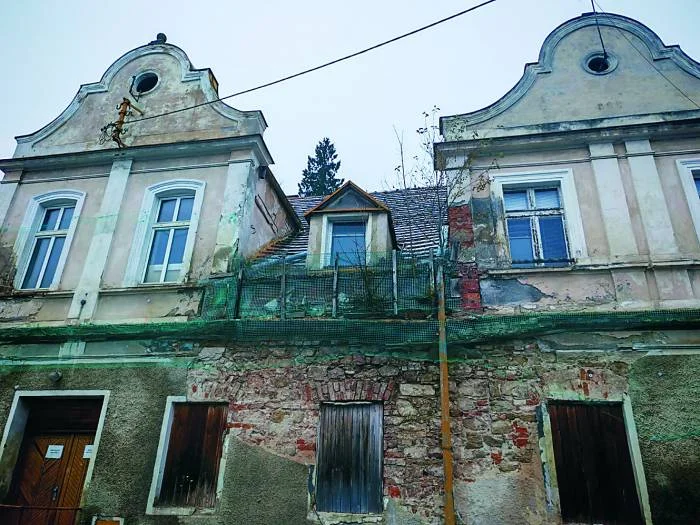 Tymczasowo zleciliśmy prace zabezpieczające osypujące się tynki i fragmenty elewacji – zapewnia wicewójt gminy Nowa Ruda. Na zabytku pojawiła się zielona siatka, która zabezpiecza sypiące się elementy.