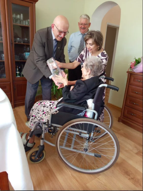 Z tej też okazji dostojną Jubilatkę i Jubilata odwiedził burmistrz Jan Bednarczyk, który w imieniu własnym oraz mieszkańców gminy złożył serdeczniejsze życzenia zdrowia i kolejnych lat w tak świetnej formie, wręczył list gratulacyjny, grawerowany wazon z życzeniami oraz kwiaty.