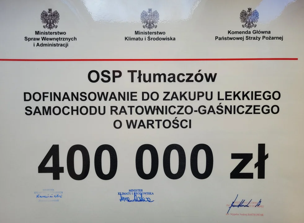 Promesy, które wczoraj otrzymały jednostki OSP wzbudziły wiele kontrowersji. Niektóre z nich otrzymały dotacje w wysokości 200 tys. zł i więcej, a są też takie jak OSP Tłumaczów, które na zakup pojazdu otrzymały 100 tys. zł.