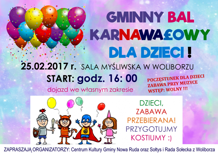 WiadomościCentrum Kultury Gminy Nowa Ruda, Sołtys oraz Rada Sołecka w Woliborzu zapraszają dzieci oraz młodzież zamieszkałą w Gminie Nowa Ruda na przebierany bal karnawałowy