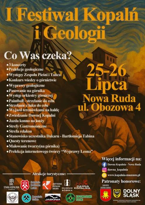 Na uczestników czeka mnóstwo atrakcji: aż trzy koncerty, prelekcje geologiczne, występy zespołów folklorystycznych oraz konkurs wiedzy o górnictwie. Miłośnicy przygód będą mogli wziąć udział w wyprawach geologicznych, pasowaniu na górnika czy pokazie orkiestry górniczej. Dla aktywnych przewidziano paintball, strzelanie z łuku, terenowe wyprawy na hałdę i zwiedzanie dawnej kopalni. Nie zabraknie także strefy gastronomicznej, relaksu oraz atrakcji dla dzieci — jak malowanie twarzy na górnika. Na miejscu będzie też specjalne stanowisko Bartłomieja Tabina — uczestnika Rajdu Dakar.