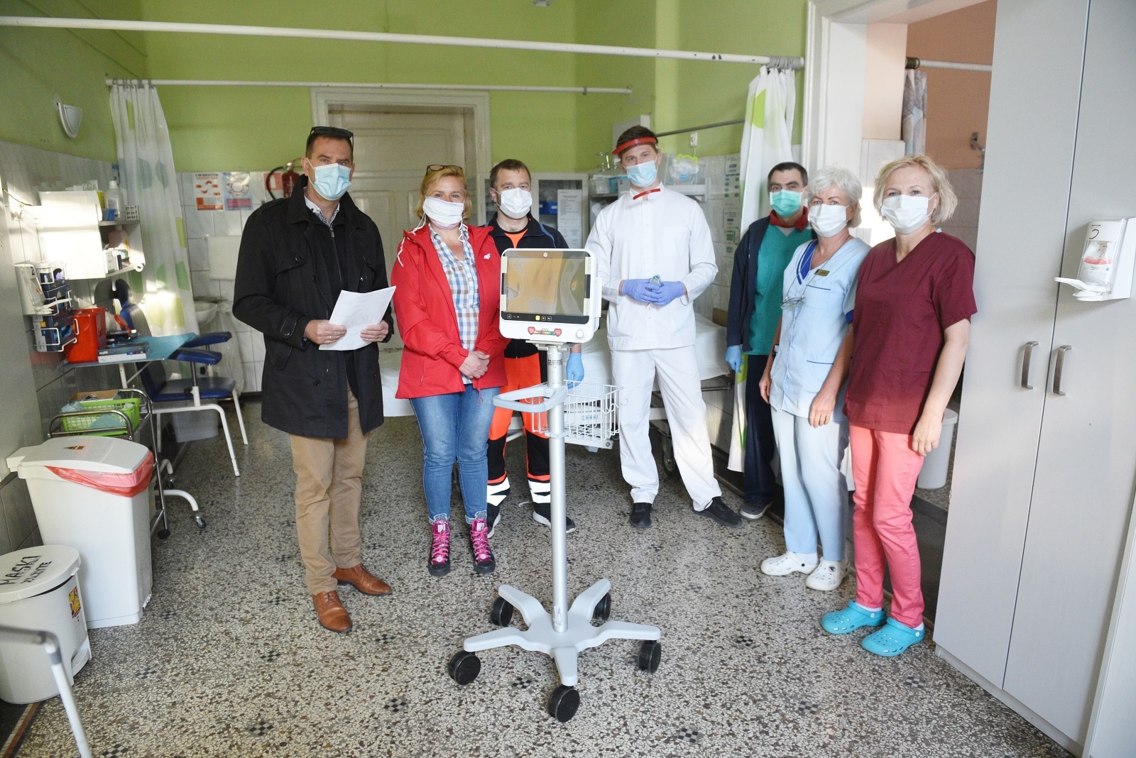 Autor: Kilka dni wcześniej WOŚP przysłała 2000 sztuk maseczek ochronnych i 500 sztuk przyłbic dla pracowników medycznych | Opis: Wielka Orkiestra Świątecznej Pomocy przekazała kłodzkiemu szpitalowi kardiomonitor