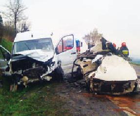 Do tragicznego wypadku doszło na drodze krajowej nr 8 na wysokości miejscowości Szklary. O tym tragicznym zdarzeniu policjanci z Ząbkowic Śląskich zostali poinformowani w sobotę, 5 kwietnia, około godziny 12.55. - 24-letni mieszkaniec Kłodzka kierujący samochodem osobowym Mazda, jadąc od strony Wrocławia, nie dostosował prędkości do śliskiej nawierzchni. Wpadł w poślizg, zjechał na przeciwległy pas jezdni i zderzył się bocznie czołowo z busem, którym jechało 8 osób - relacjonuje przebieg wypadku Ilona Golec z Komendy Powiatowej Policji w Ząbkowicach Śl. Busem kierował 52-letni mężczyzna, który wraz z pasażerami trafił na obserwację do ząbkowickiego szpitala. Na dłuższą obserwację w szpitalu pozostawiono dwóch pasażerów. Akcja ratownicza trwała 5 godzin, wzięło w niej udział 30 strażaków, 3 zastępy z Państwowej Straży Pożarnej i 4 jednostki Ochotniczych Straży Pożarnych.