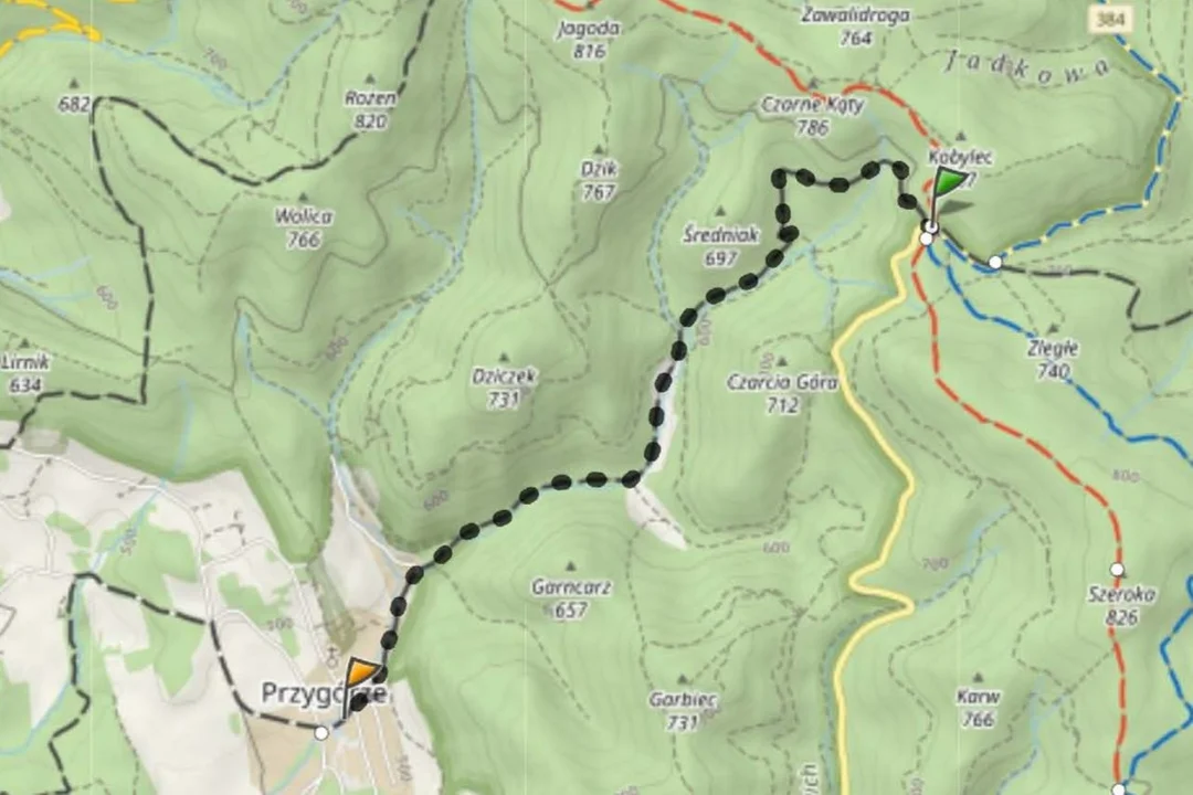 - oraz na całej długości czarnego szlaku od Przełęczy Woliborskiej do miejscowości Przygórze.