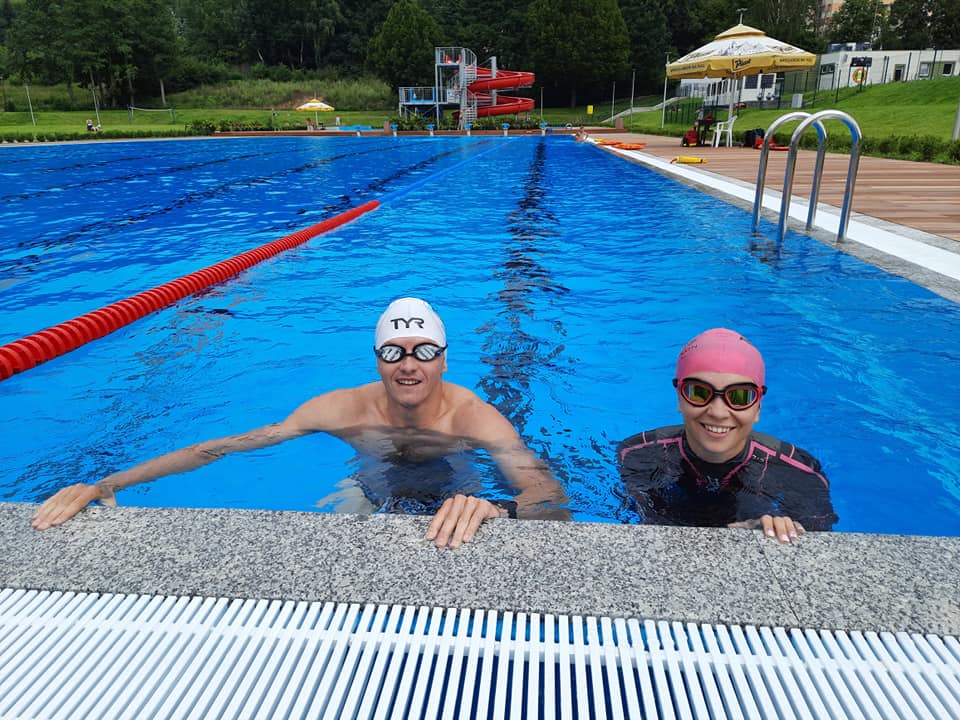 Nowa Ruda. Na świeżo otwartym basenie pływają nie tylko mieszkańcy. Okazuje się, że ćwiczą tu również pływacy z Klubu UKS Manta Warszawa. Kamila i Janek przygotowują się do Mistrzostw Świata w Triathlonie w USA. Są bardzo zadowoleni z warunków Basenu Miejskiego, co widać na zdjęciach.