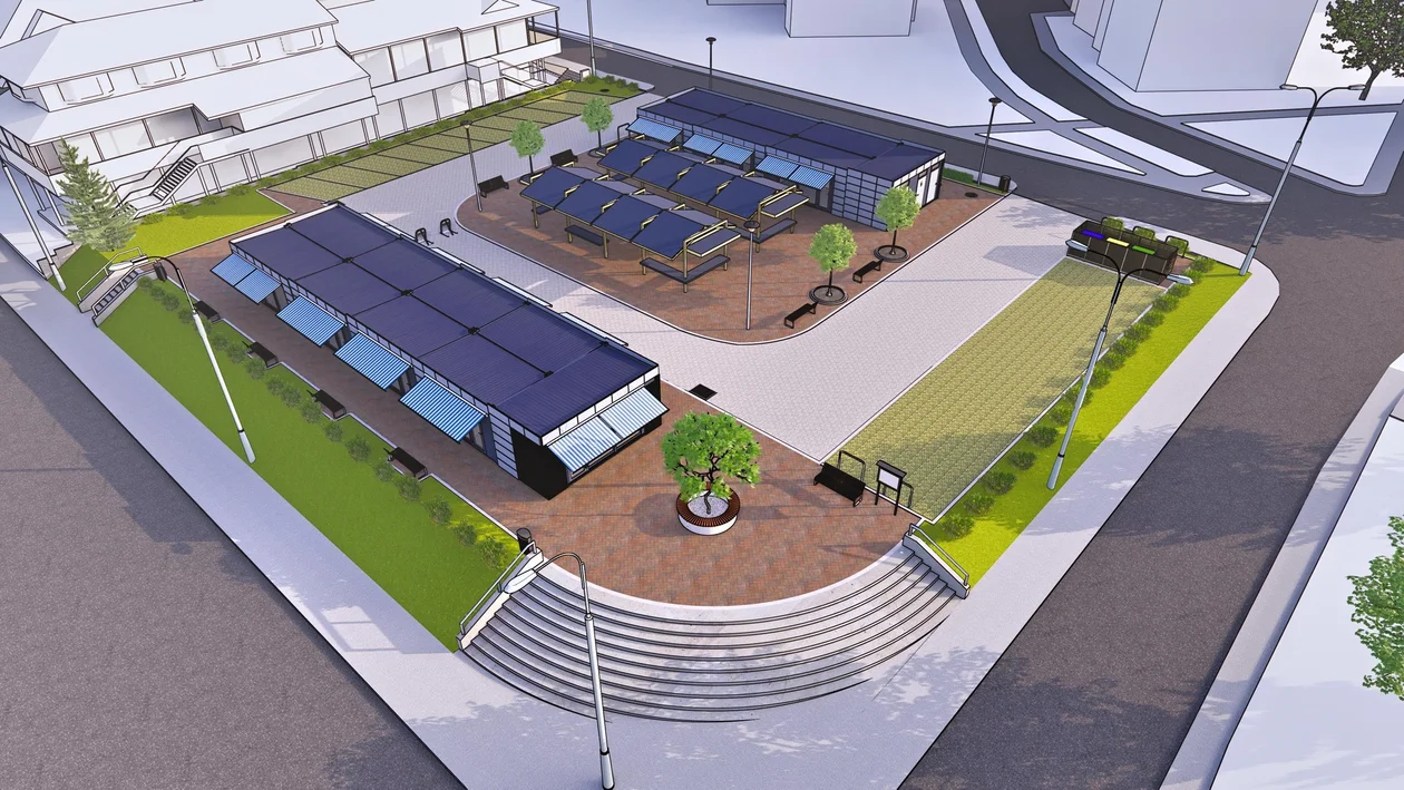 Prace będą polegać na: utwardzeniu placu - nawierzchnia z kostki betonowej, budowie nowego oświetlenia wraz z monitoringiem, budowie zaplecza sanitarnego - toalety oraz wykonaniu nowych schodów od strony ulicy Kłodzkiej.