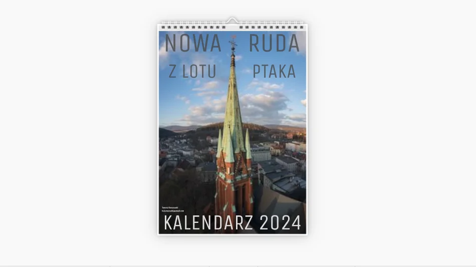 Kalendarz ma rozmiar A3, powstał na półmatowym papierze i zawiera zdjęcia Nowej Rudy wykonane dronem, na przestrzeni ostatnich kilkunastu miesięcy.