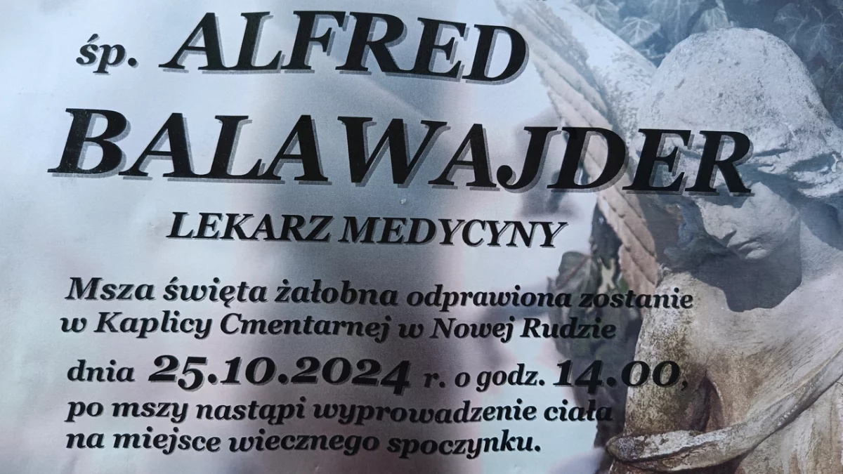Pogrzeb Alfreda Balawajdra odbędzie się w piątek, 25 października, o godzinie 14:00 w Kaplicy Cmentarnej w Nowej Rudzie.