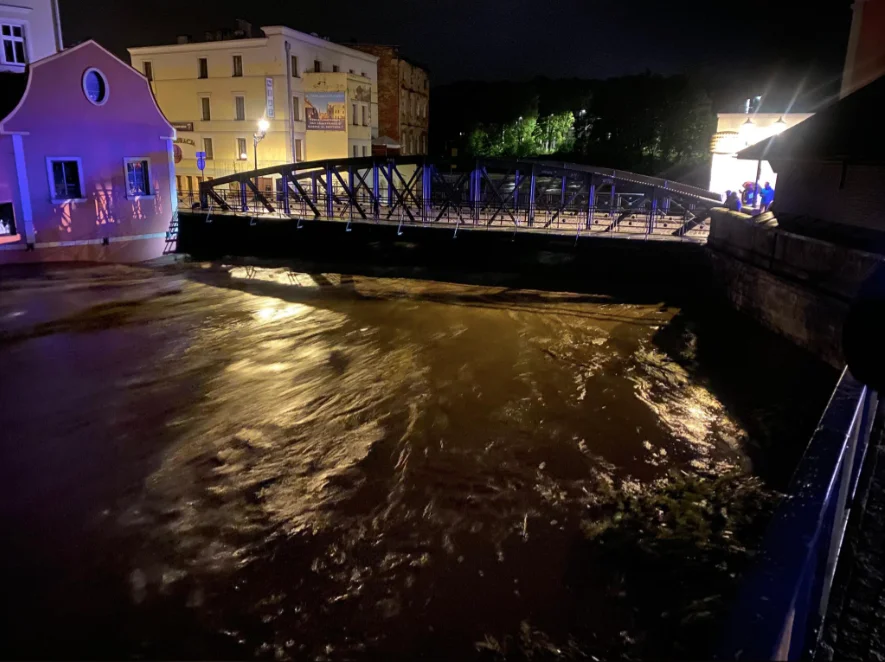 - Kłodzko - aktualny stan: 550,7 cm, stan alarmowy: 240 cm, stan maksymalny: 655 cm