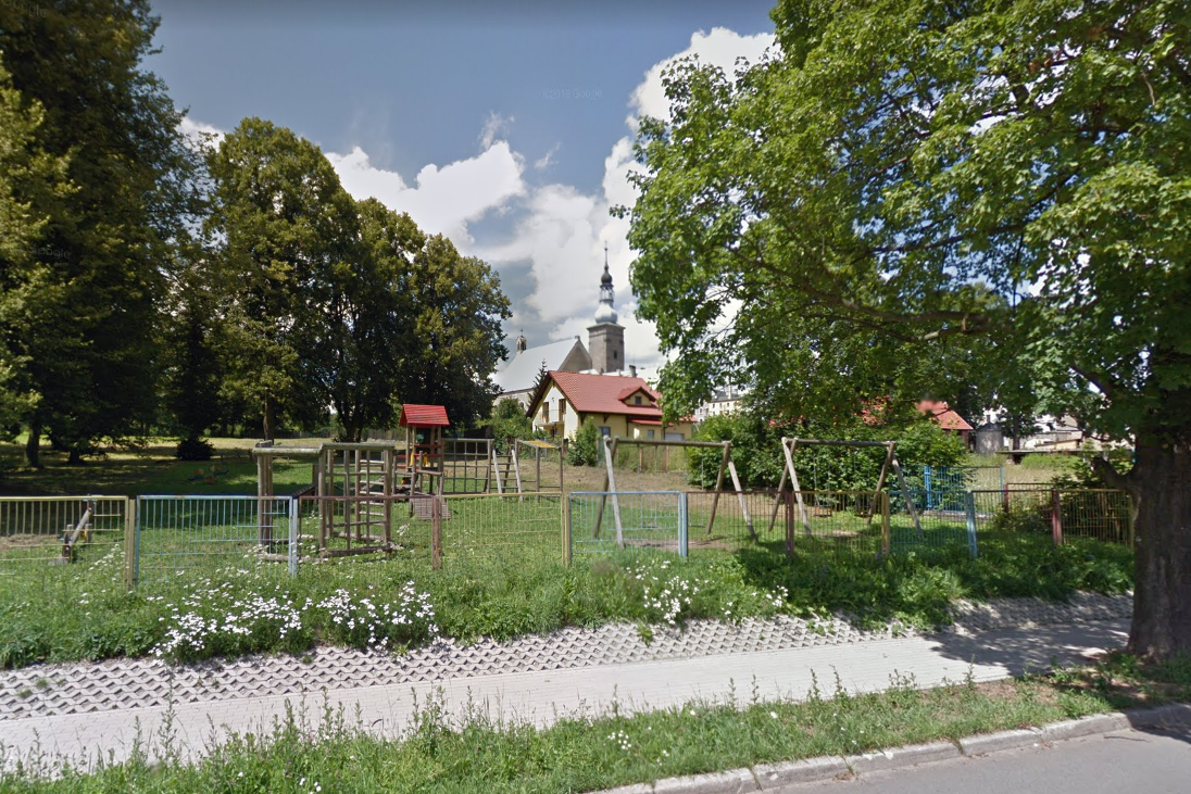 Radków. Plac zabaw przy ulicy Kościuszki jest ogólnodostępnym terenem rekreacyjnym. Na placu znajduje się piaskownica, huśtawki oraz konstrukcja ze zjeżdżalniami, drabinkami, mostkami wiszącymi.