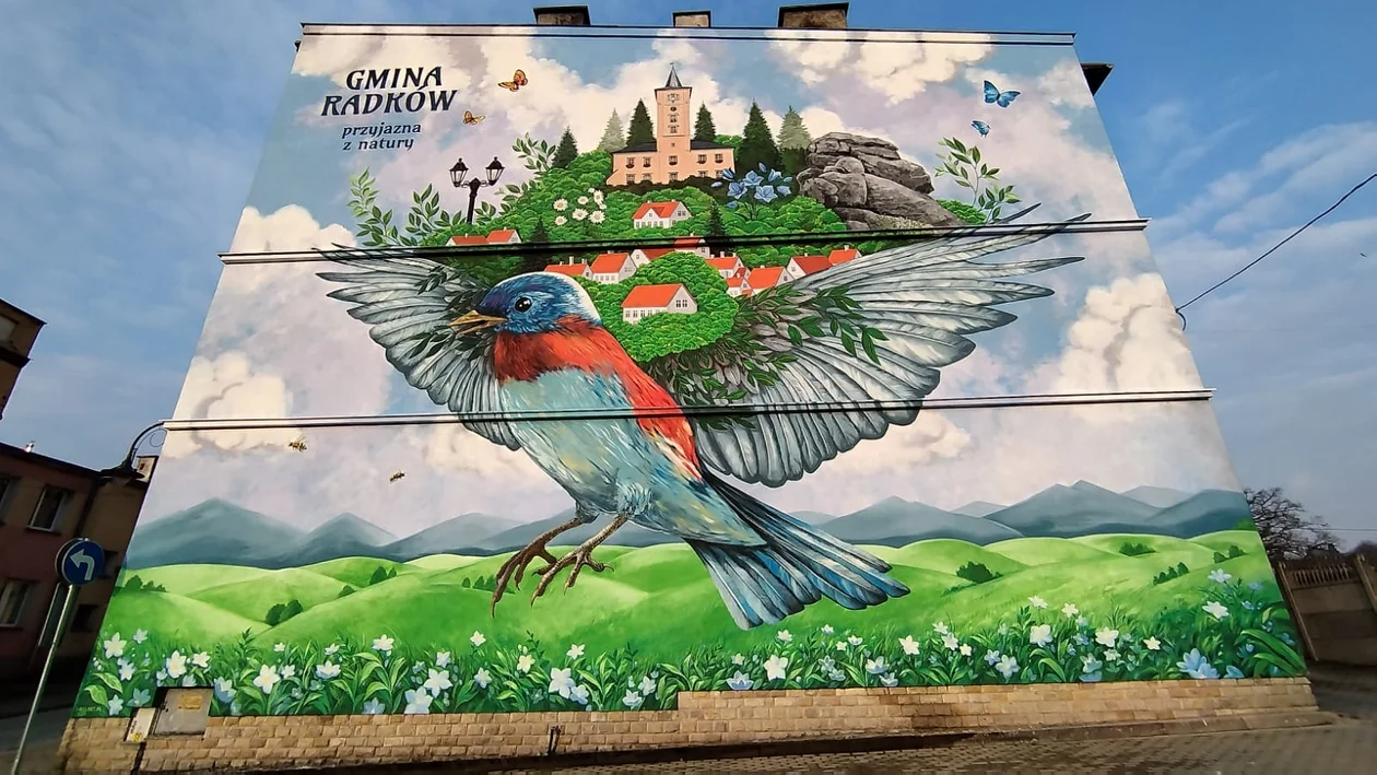 Radków. Na elewacji budynku przy ul. Chrobrego 16 powstał mural. Po bardzo długich uzgodnieniach z Wojewódzkim Konserwatorem Zabytków i dzięki akceptacji właściciela nieruchomości jeszcze w marcu na elewacji budynku powstanie piękny mural - informowali pod koniec lutego gminni urzędnicy.