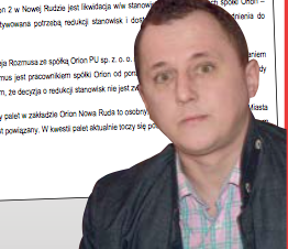 Czy noworudzki radny Barłomiej Rozmus, to złodziej? Nie zarzeka się już nie tylko sam radny, ale także jego obecny pracodawca. Choć kierownictwo spółki Orion zamierza zwolnić Rozmusa pracującego u nich jako zastępca kierownika, to w wydanym przed trzema dniami (poniedziałek, 7 marca) specjalnym oświadczeniu zapewniają, że nie ma to związku z wykrytymi przypadkami kradzieży. Sprawa kradzieży palet w zakła- dzie Orion Nowa Ruda, to osobny, niezwiązany z prośbą do Rady Miasta temat, z którym Bartłomiej Rozmus także nie jest powiązany - piszą członkowie zarządu spółki prowadzącej swój zakład nie tylko przy ul. Spacerowej w dzielnicy Słupiec, ale także w Dzierżoniowie. Dlaczego zatem Rozmus miałby pożegnać się ze stanowiskiem? Oficjalną przyczyną podawaną przez zarząd Oriona jest konieczność dostosowywania struktury zatrudnienia do aktualnych potrzeb firmy. Przyczyną wniosku o zwolnienie Bartłomieja Rozmusa ze stanowiska zastępcy kierownika magazynu w zakładzie Orion 2 w Nowej Rudzie jest likwidacja w/w stanowiska w obydwu zakładach spółki Orion zarówno w Dzierżoniowie, jak i w Nowej Rudzie - zaznacza kierownictwo spółki. Sam Rozmus przed tygodniem chętnie wypowiadał się dziennikarzom „Gazety Noworudzkiej”. Zapowiadał wtedy, że po spotkaniu kierownictwa spółki z radnymi ze specjalnej komisji (doszło do niego w czwartek, 3 marca) udzieli szczegółowych informacji na temat tego, co działo się w Orionie. Przed trzema dniami (poniedziałek, 7 marca) nie chciał już jednak rozmawiać z dziennikarzami. Do widzenia - usłyszała nasza reporterka dzwoniąc do noworudzkiego radnego.