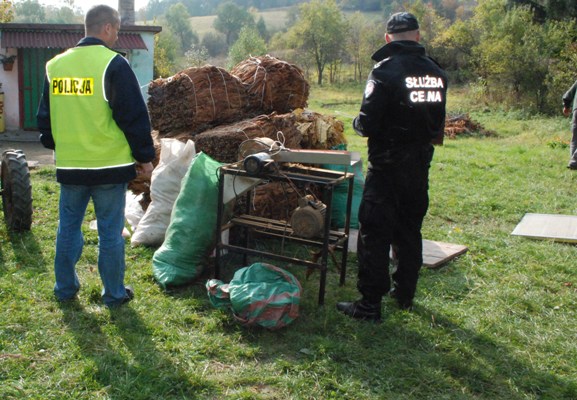 wraz z przygotowanym do cięcia tytoniem. Łącznie funkcjonariusze