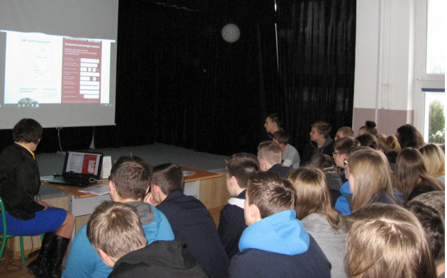 Spotkanie odbyło się 16 marca 2016 roku. Celem spotkania z uczniami klas drugich i trzecich było promowanie Narodowej Loterii Paragonowej oraz elektronicznych form rozliczania podatków w ramach kampanii „Szybki PIT". Pracownicy urzędu uświadomili młodzieży, że wydawanie i branie paragonów przy każdych zakupach oraz proszenie o paragon w sytuacji kiedy sprzedawca zapomina o jego wydaniu, to nie tylko możliwość udziału w trwającej loterii ale i postawa obywatelska. Ponadto, słuchaczy zainteresował temat szybkiego i bezpiecznego elektronicznego przesyłania zeznań i deklaracji. Na zakończenie spotkania pracownicy urzędu przeprowadzili wśród uczniów krótki podsumowujący test wiedzy na temat zasad udziału w Narodowej Loterii Paragonowej oraz rozliczania się z Administracją Podatkową w formie elektronicznej. Prawidłowe odpowiedzi zostały nagrodzone przygotowanymi na to spotkanie gadżetami.