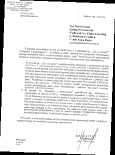 Najwięcej emocji wzbudziła jednak informacja o podwyższeniu w ubiegłym roku o kilkaset złotych pensji strażników miejskich.Burmistrz Jan Bednarczyk w rozmowie z dziennikarzami "Gazety Noworudzkiej" broni podjętej w tej sprawie przez siebie decyzji.Twierdzi, że dzięki tym podwyżkom pensje otrzymywane przez strażników zostały zrównane z tym, co otrzymują pozostali urzędnicy.