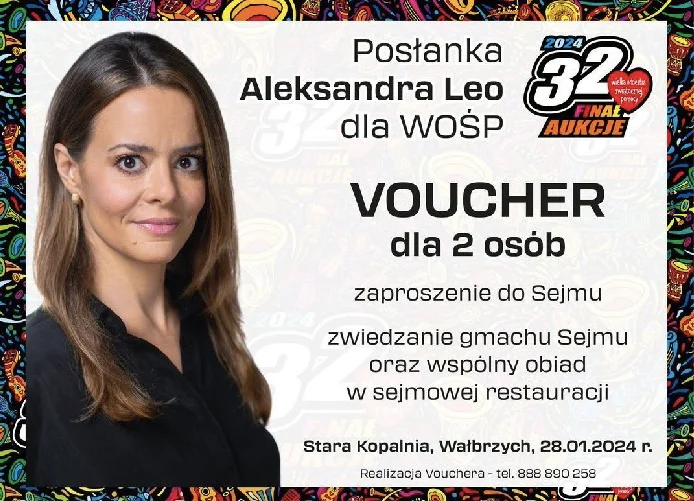 Aleksandra Leo, druga nasza posłanka (z okręgu wałbrzyskiego) zwycięzce licytacji oprowadzi po wystawie w warszawskiej Zachęcie. Zaprosi tez na wspólny lunch.
