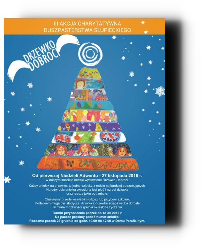 Ta akcja cieszy się olbrzymim zainteresowaniem wśród parafian. To właśnie dlatego nie może jej zabraknąć również przed tegorocznymi Świętami Bożego Narodzenia. W kościele w dzielnicy Słupiec stanie drzewo dobroci. Już od najbliższej niedzieli, 27 listopada będzie można przyłączyć się do pomocy najbiedniejszym. - Każdy aniołek, który będzie zawieszony na drzewku oznacza jedno dziecko z potrzebującej rodziny. Na odwrocie aniołka znajdują się informacje o dziecku: płeć, wzrost, a także rzeczy jakie są jemu potrzebne - wyjaśnia zasady akcji ks. Marcin, wikary z miejscowej parafii. Księża nie ukrywają, że mają nadzieję zebrać od parafin jak najwięcej m. in. ubrań oraz artykułów szkolnych i słodyczy, którymi zostaną obdarowani najubożsi. Paczki wypełnione rzeczami wypisanymi na aniołkach można przynosić do 18 grudnia. Zostaną przekazane dzieciom już 23 grudnia, tuż przed Wigilią. Na podarunku należy napisać numer aniołka.