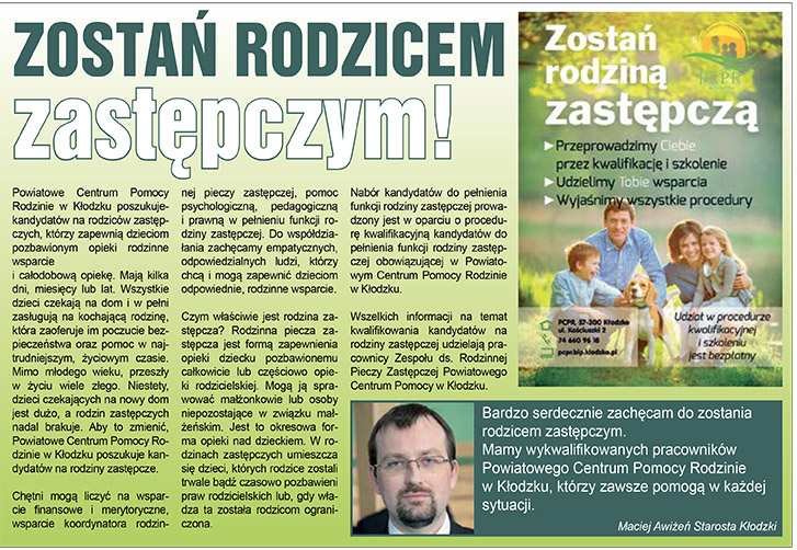 WiadomościPowiatowe Centrum Pomocy Rodzinie w Kłodzku poszukuje kandydatów na rodziców zastępczych.